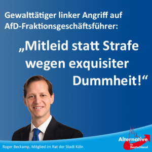 KÖLN, 22.01.2016. Ich verurteile den gewalttätigen Angriff zweier Linksextremisten auf unseren Fraktionsgeschäftsführer Thomas Traeder und hoffe, dass sich dieser bald erholt. Es ist beschämend, wie sich die Demokratie entwickelt und wie bürgerliche Parteien und Lokalpresse dazu schweigen. Im Hinblick auf die linken Straftäter plädiere ich als Rechtsanwalt jedoch für Mitleid statt Strafe – wegen exquisiter Dummheit.