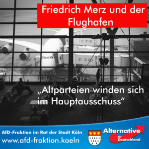 - Die Kölner CDU bringt einen Antrag in den Hauptausschuss ein, wonach eine Privatisierung aller Flughafenanteile verhindert werden soll. Gleichzeitig bereiten aber die CDU-geführten Bundes- und Landesregierungen genau diese Privatisierung vor.