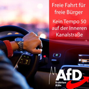 Die AfD Fraktion im Rat der Stadt Köln lehnt ein generelles Tempo 50 auf der Inneren Kanalstraße ab.