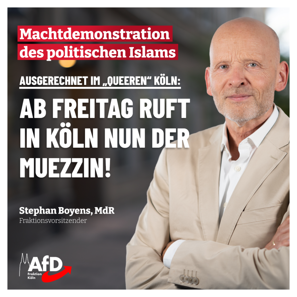 ++Islamischer Muezzin ertönt ab Freitag erstmals in Köln! ++ Ab morgen bewahrheitet sich das, wovor wir als AfD-Fraktion und weitere Kritiker bereits seit vielen Jahren eindringlich warnen: Der Muezzin ertönt […]