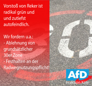 „Gerade in der Pandemie haben viele Bürger den Wert einen eigenen Autos schätzen gelernt. Der Rückgang des Automobilverkehrs ist die bedauerliche Folge des Shutdowns und der damit verbundenen, für viele Bürger katastrophalen wirtschaftlichen Folgen. Es ist daher in besonderem Maße takt- und instinktlos, eine solche Ausnahme- und Notsituation zu missbrauchen, um die eigene politische Agenda voranzubringen“, sagt Stephan Boyens, Fraktionsvorsitzender der Kölner AfD Fraktion.