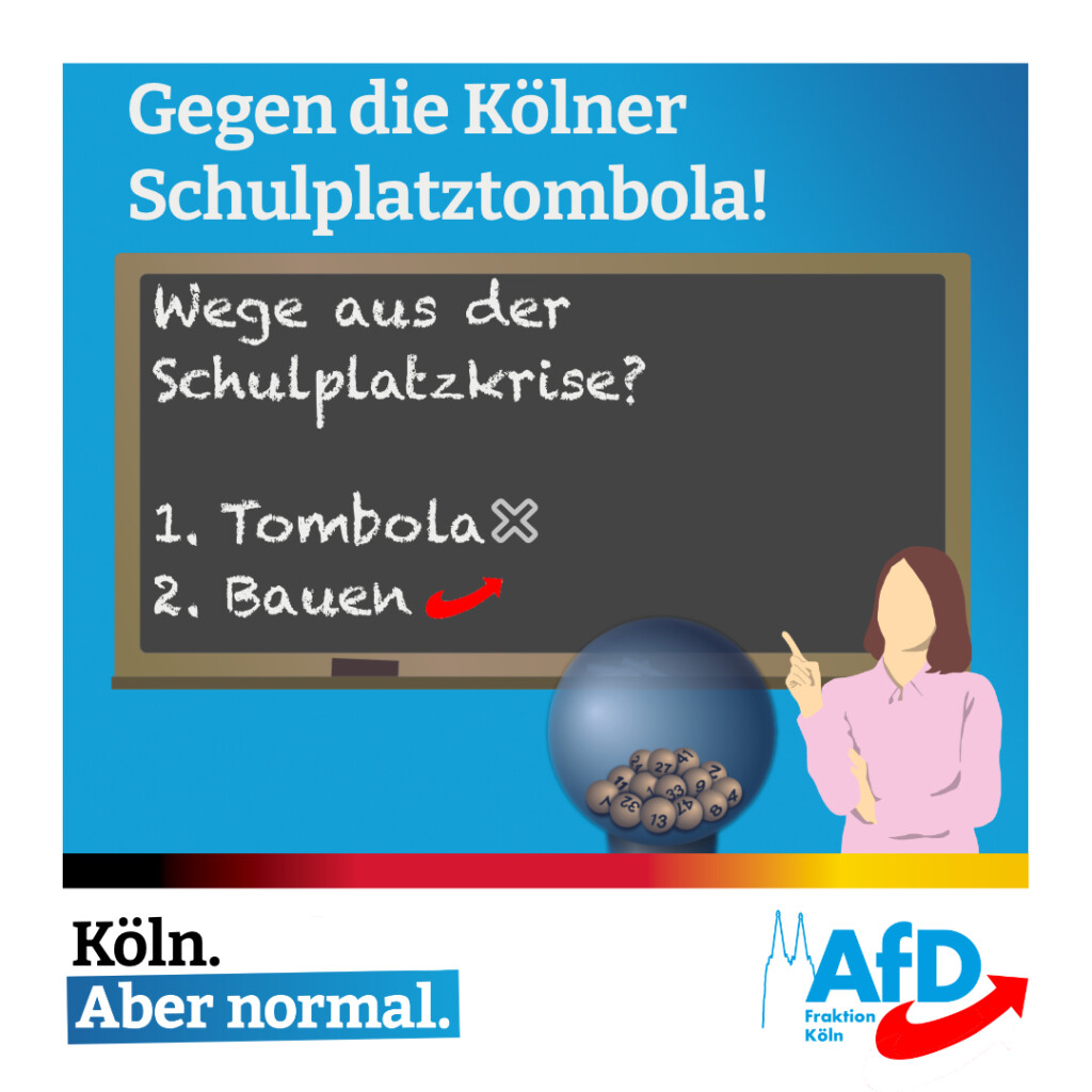„Familien und Kinder stehen gerade unter unbeschreiblichem Druck. Die „Schulplatztombola“, wie das Verlosen der Plätze bei Kölner Eltern genannt wird, toppt das schon schlechte Verfahren aus dem letzten Jahr. Wir fordern die Verwaltung auf, zur nächsten Ratssitzung im Mai, kurzfristige Lösungen zu präsentieren, die den Elternwünschen entsprechen. Wir werden unseren Beitrag zu einer familienfreundlichen Schul – und Verteilungspolitik in der kommenden Ratssitzung einbringen.“ ergänzt Matthias Büschges, Geschäftsführer der Kölner AfD Ratsfraktion.
