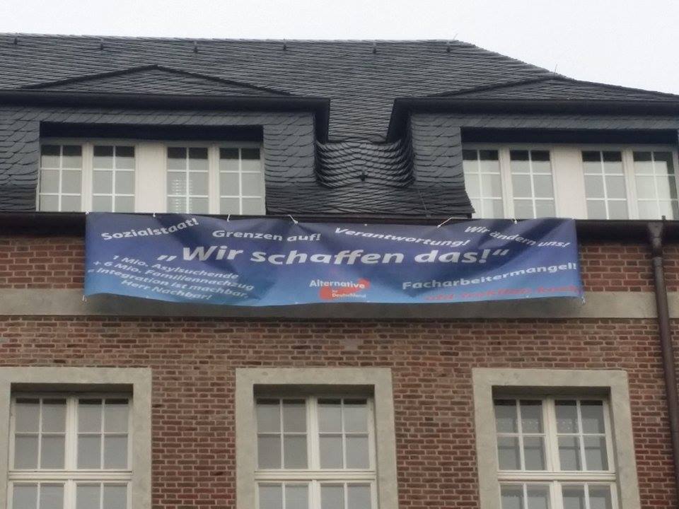 KÖLN, 20.10.2015. Die AfD-Fraktion im Kölner Rat hatte seit 9. Oktober 2015 ein Banner auf der Fassade ihrer Räumlichkeiten im Haus Neuerburg angebracht. Die zentrale Aussage „Wir schaffen das!“ wurde […]