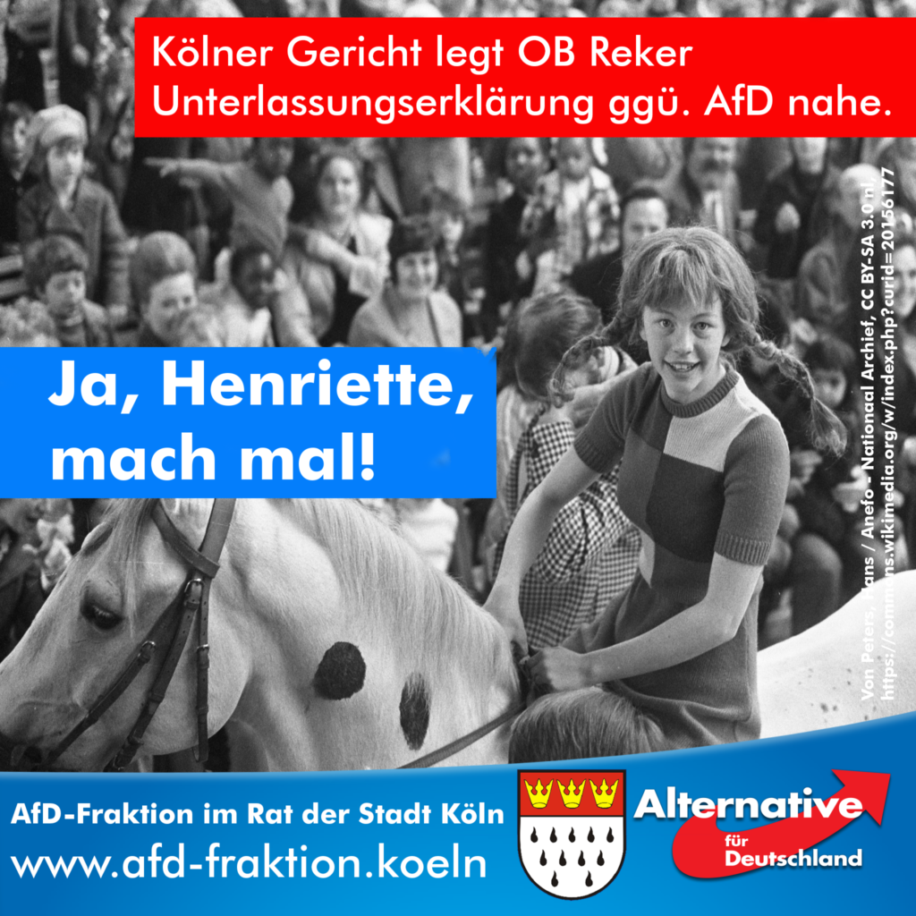 Mehr lesenVerwaltungsgericht Köln hält Äußerung der Kölner Oberbürgermeisterin Reker über AfD für unzulässig