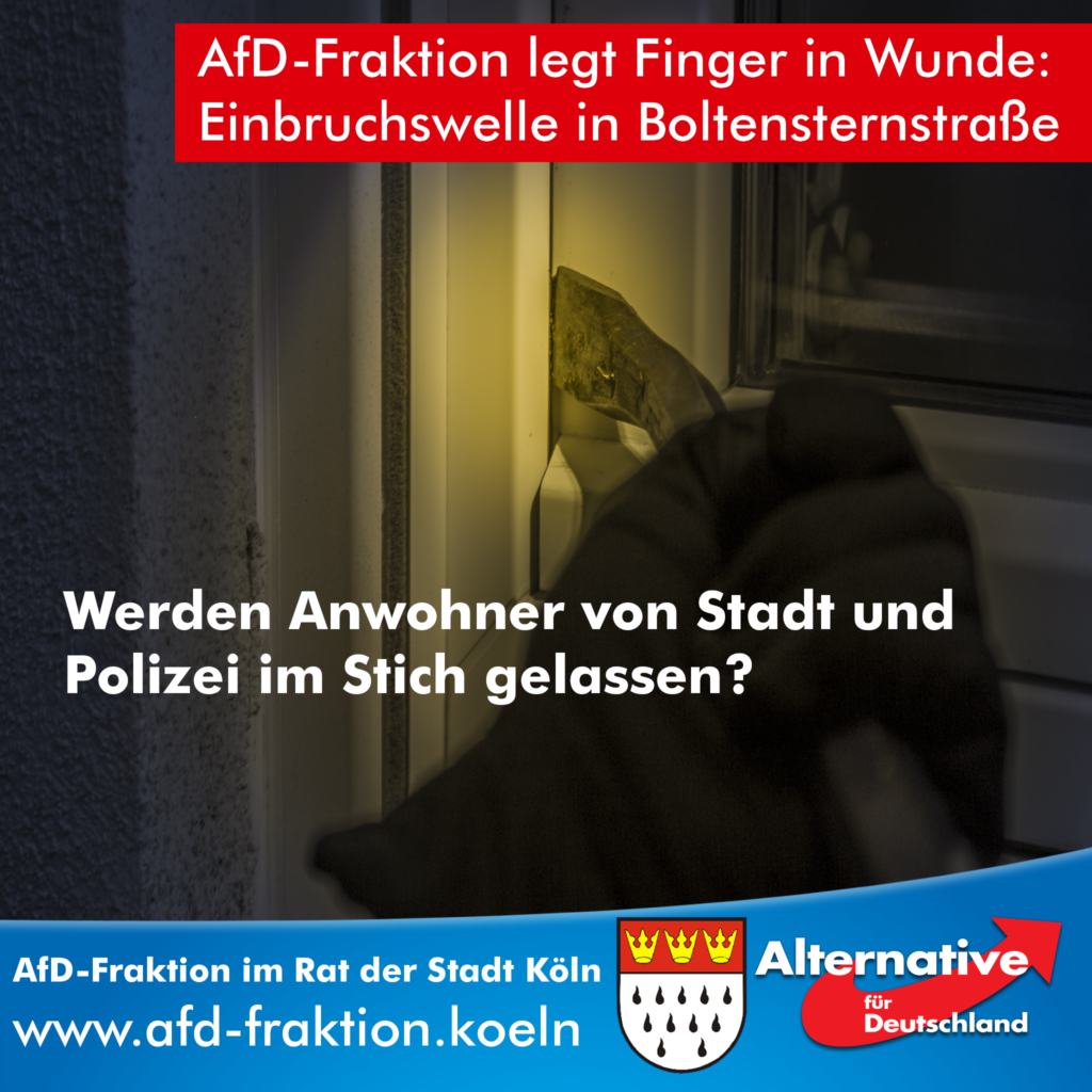 KÖLN, 09.12.2016. Heute hat die AfD-Fraktion im Rat der Stadt Köln eine Ratsanfrage zu vermehrten Einbrüchen in der Schrebergartenanlage an der Boltensternstraße in Köln-Riehl gestellt. „Die Anwohner beklagen die eigene […]