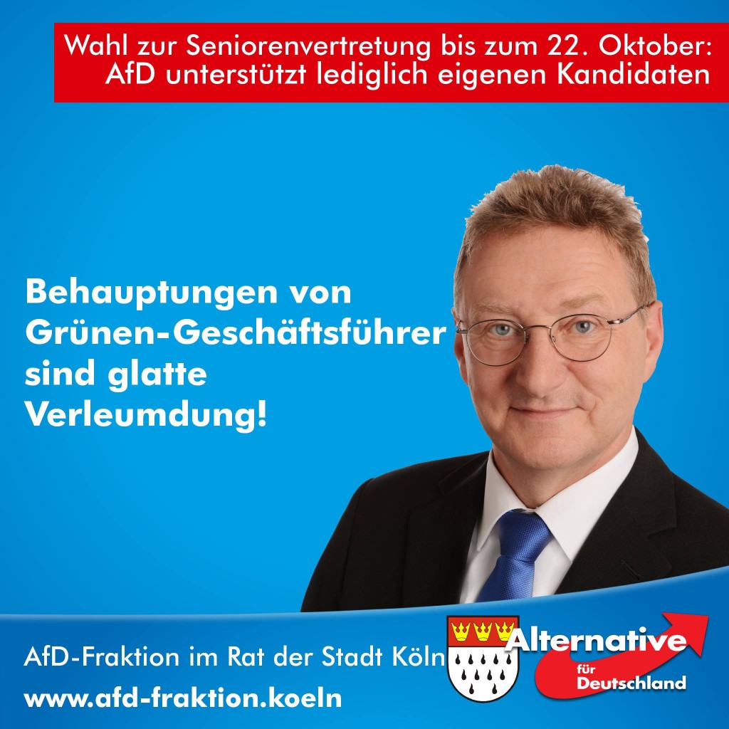 KÖLN, 14.10.2016. Die AfD-Fraktion im Rat der Stadt Köln weist die Vorwürfe des Grünen-Fraktionsgeschäftsführers Jörg Frank zurück, wonach man bei der Wahl zur Seniorenvertretung dazu aufgerufen habe, Kandidaten von Pro […]